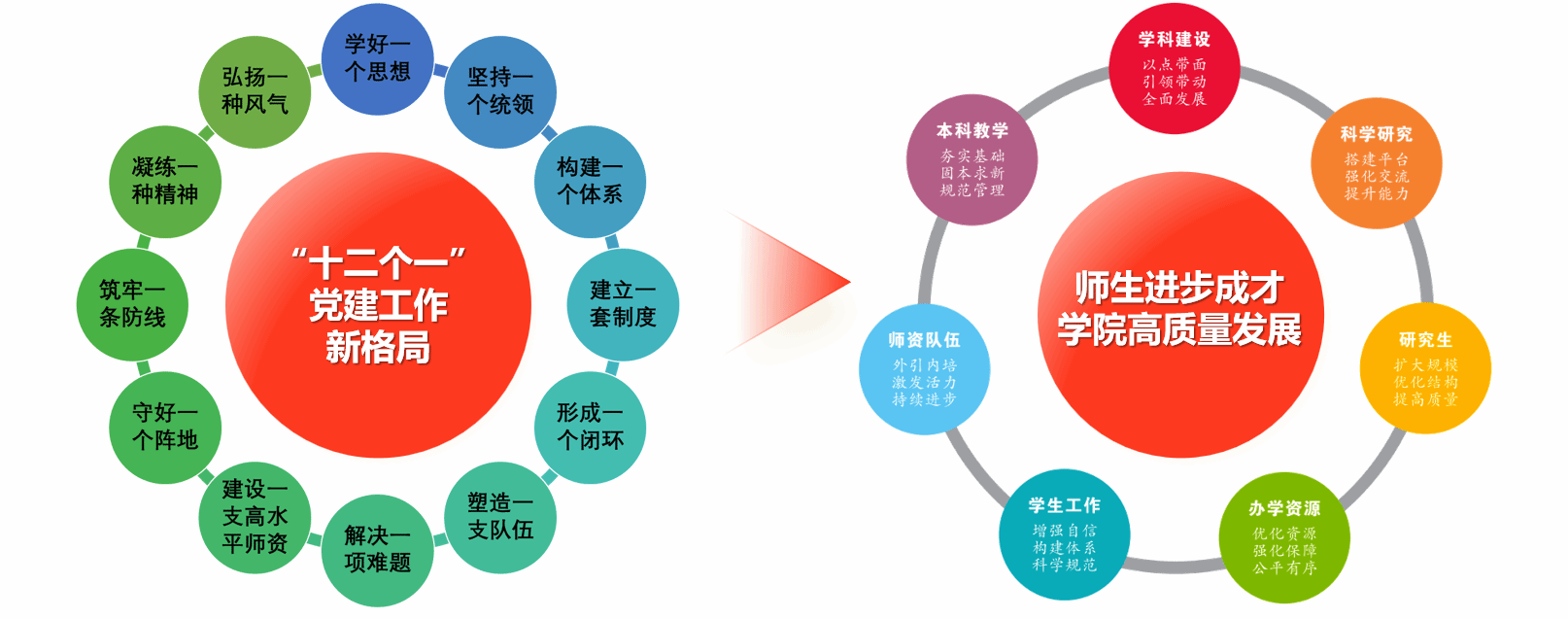 学院党委认真学习贯彻落实习近平新时代中国特色社会主义思想,以马克思主义系统观为指导,紧紧围绕党的政治建设、思想建设、组织建设、作风建设、纪律建设、制度建设,构建了“十二个一”党建工作新格局,开展了一系列理论探索和实践活动。