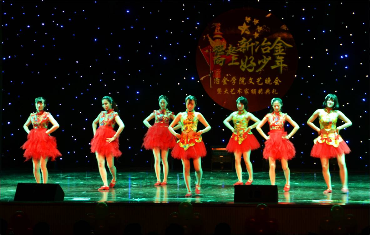 致辞毕,精彩的开场舞拉开晚会的帷幕,第一篇章“缘聚冶金”,由大艺术家们带来的情景剧《爱情玛奇朵》,尽现青春爱情的单纯与羞涩,飘然流转的舞蹈《宫商角徵羽》,给同学们带来了一场视听盛宴。“建大生活酸,建大生活甜,建大生活最斑斓”,来自徐博等人的相声《建大生活》道出了他们在大一这一年里的生活趣事,幽默风趣的语言,赢得了同学们不断的掌声。更有化工14级同学带来的舞蹈《young for you》,年轻的旋律,激情飞扬的舞姿将晚会气氛推向高潮。