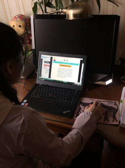 袁艳老师讲授的是《专业外语》,鉴于课程内容的小众性,中国大学MOOC等教学平台未能找到匹配教学视频,而语言类课程需要的是营造外语氛围,直播为必要手段。为此袁艳老师特别学习了雨课堂、超星泛雅课堂、腾讯课堂、企业微信等多种直播方法,经过自己亲身多方测试,最终确定了腾讯课堂直播+超星学习通下发资料的在线教学方案。同时她还学会了EV录屏,及时将授课视频生成回放,便于同学课后及时复习。由于袁艳老师家里有老人和幼子,早上8点就要上课,为保证授课效果,她早早起来带上所有的资料和设备,坐进楼下的车里,坚持完成了1小时40分的课堂直播,原本五十多人的课堂竟然涌进七十多人听课。