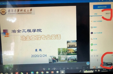 了学校前期的多场培训,并认真学习了学院推送的教学视频,经过多次实践,以及与其他老师的沟通交流,最终确定了专业性比较强的雨课堂直播,并引用了中国大学MOOC平台中的资源,精心建立完备的资料库。后来随着其他高校开学后传来关于网络卡顿的消息,为保证直播能够顺利进行,折媛老师又分别准备了腾讯会议,腾讯课堂,以及QQ群播放PPT+语音三套备用方案。在周一1、2节《冶金工业技术经济》的授课中,折媛老师7:20就开始做授课的前期准备,后因网络卡顿采用了备选方案一“腾讯会议”教学模式。周二《铁冶金学》授课,利用腾讯会议和QQ群的组合模式,进行了与课堂教学同时长的50min+50min直播教学,期间部分利用MOOC课程库视频资源,衔接快速顺畅,小窗口师生互动性好,并在课间休息时间在QQ教学群完成了“群接龙”签到,整个教学由于前期准备充分,全程流畅无卡顿。