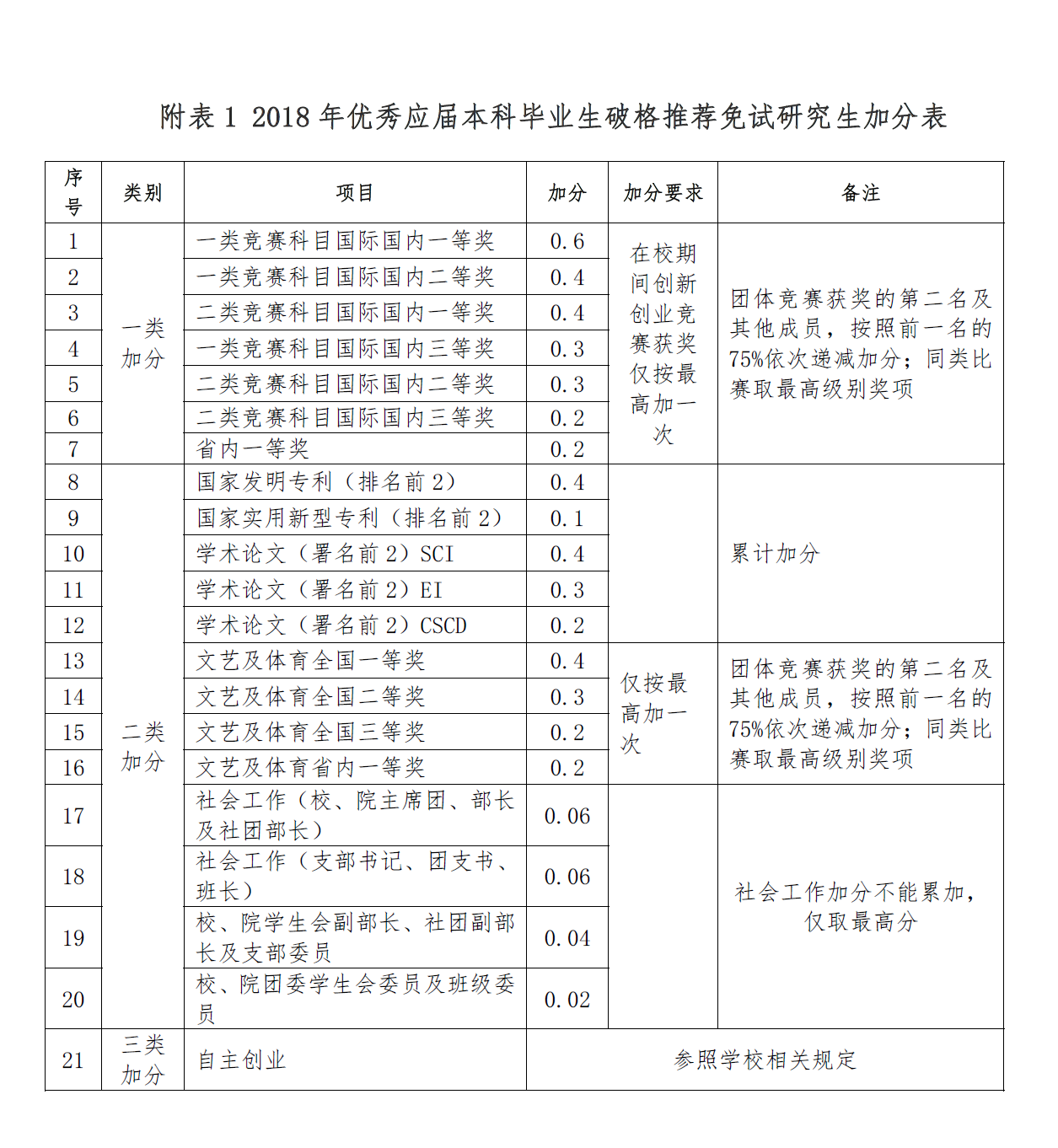 每位申请破格推免生同学的综合测评成绩由其平均学分绩点、创新创业竞赛获奖及其他获奖加分、自主创业加分构成,以综合测评成绩进行排序。加分标准按附表1规定执行。