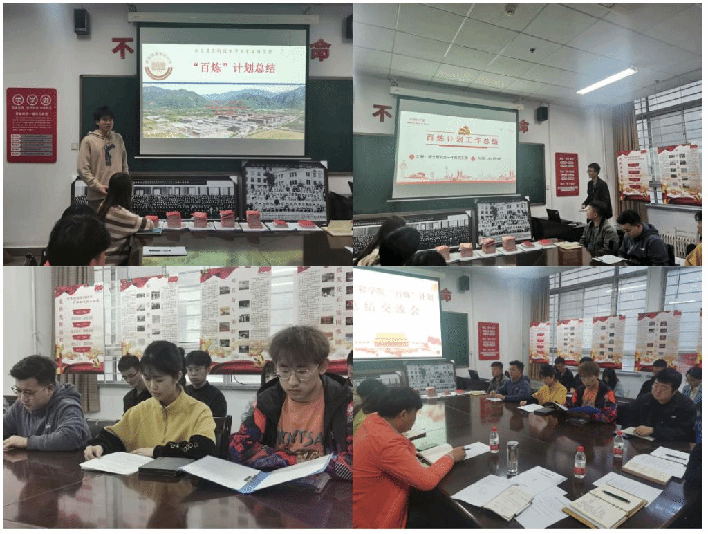 4月2日-4月26日,各学生党支部按照《通知》要求,开展总结,梳理半年来开展“百炼”计划相关资料,撰写党支部开展“百炼”计划总结报告,提交全体党员“百炼”卡,召开全体党员大会,每名党员介绍“百炼”计划执行落实情况,评选“百炼”计划优秀党员49名。