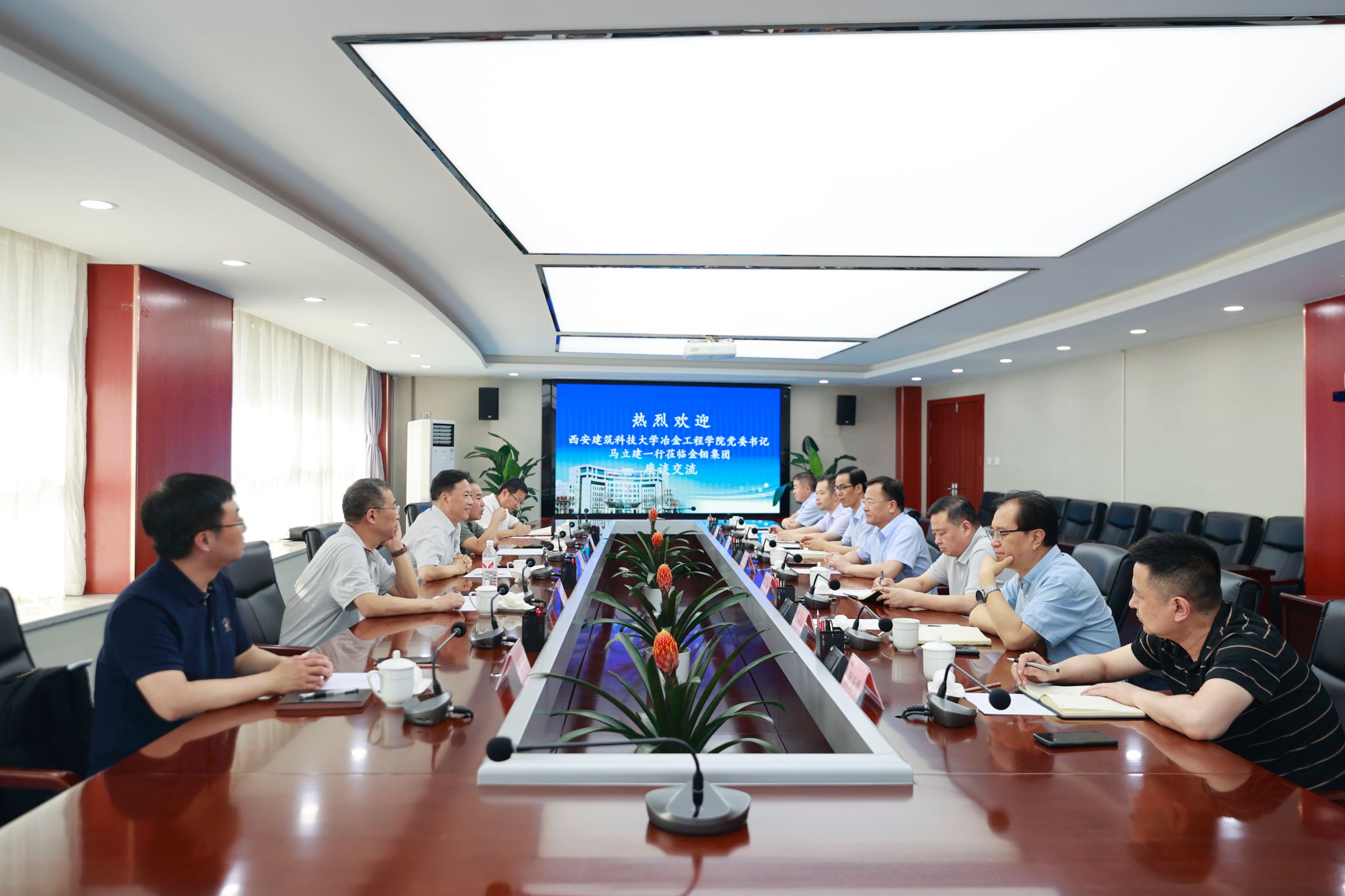 校友、金钼集团党委书记、董事长严平、总经理陈超座谈交流。双方围绕校企合作、产教融合、人才培养和大学生就业进行了深入探讨。学院朱军教授、副书记、副院长赵福才、副院长王文、金钼集团冶炼分厂总经理孙耀林、办公室副主任等一同会谈交流。