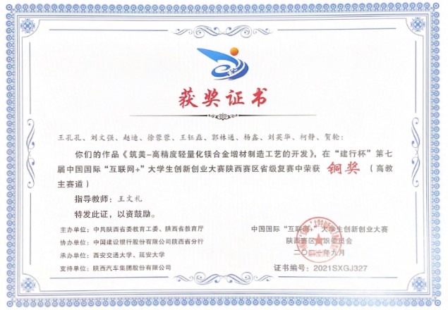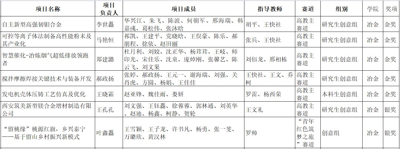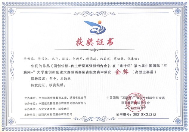 在第七届中国“互联网+”大学生创新创业大赛中,冶金师生锐意进取、首重创新,在校赛中获得5金2银的优异成绩;在省赛中,获得2金1银3铜;在国赛中,获得1银。获奖数量和质量位居全校第一,再次刷新我院在“互联网+”大学生创新创业教育中的最好成绩。其中由胡平、王快社教授指导,李世磊、华兴江、陈波等同学完成的“国创优钼——自主新型高强韧钼合金”项目获总决赛高教主赛道银奖。