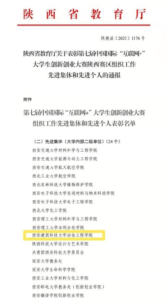 随着第七届中国国际“互联网+”大学生创新创业大赛落下帷幕,陕西省教育厅发布《关于表彰第七届中国国际“互联网+”大学生创新创业大赛陕西赛区组织工作先进集体和先进个人的通报》,91成人