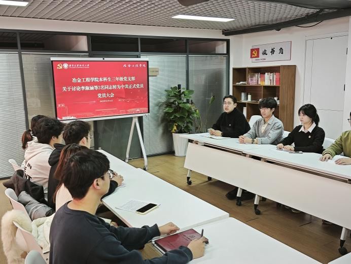 会上,李淑涵,赵佳,潘羽菲三名同志依次发言,就预备期内的思想动态,学习工作表现,对党的理论认识的深化以及入党动机的进一步纯粹向大会作了详细汇报。随后,入党介绍人介绍其在预备期内的培养,教育和考察情况,对其政治品质,理论学习,专业表现和先锋模范作用给予评价。支部委员会向大会报告了对三位预备党员的政审情况,经与会正式党员充分讨论后,大会采取无记名投票方式进行表决。根据表决结果,支部大会一致同意接收李淑涵,赵佳,潘羽菲三位同志为中共正式党员。