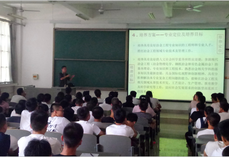 为帮助2017级新生尽快了解专业发展,完成个人学业的设计,9月6日,91成人 教学办组织了2017级新生的专业介绍活动,邀请化工教研室主任张秋利、材成教研室主任王强、金属教研室主任胡平、冶金教研室主任施瑞盟四位老师赴草堂校区,为同学们进行了精彩的宣讲。