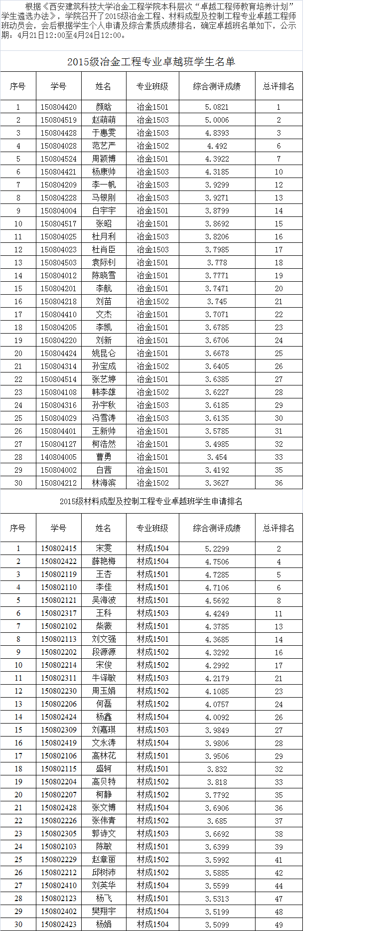 卓越工程师班名单公示