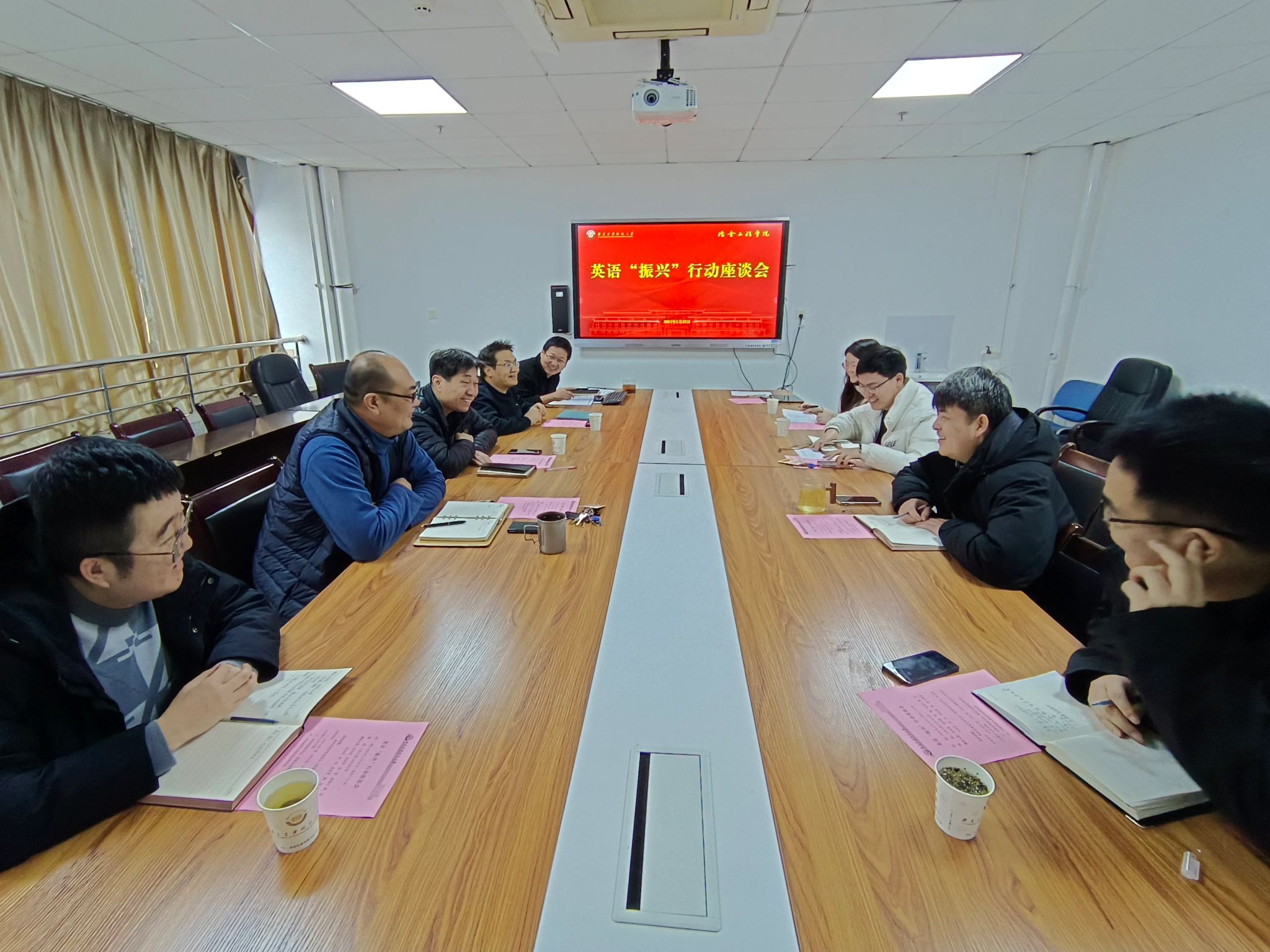 召开英语“振兴”行动座谈会,教师发展研究院院长(高教研究所所长)杜忠泽,学院副院长杨西荣,学院副书记、副院长张佩,全体辅导员参加了座谈会,会议由副处级辅导员赵福才主持。