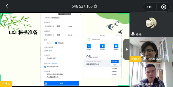 线上会议由郭艳萍老师主持,分为两个环节。首先由郭艳萍老师通过PPT讲述预答辩线上培训的准备工作、主要流程、注意事项等,主要针对“腾讯会议”软件进行线上预答辩的操作,让老师和同学提前熟悉软件、预答辩时的流程及材料准备。