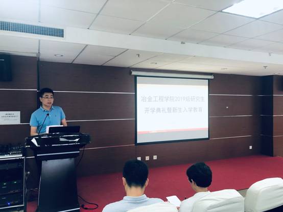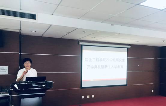 2019级研究生开学典礼于9月10日在工科楼1111会议室顺利开展,冶金学院科研副院长李小明教授,冶金学院研究生科研办秘书刘漫博老师、研究生18级辅导员郭艳萍老师、19级辅导员徐瑞朝老师、为新生讲解实验室安全“开学第一课”的罗雷老师以及2019级全体研究生出席典礼。典礼由刘老师主持。