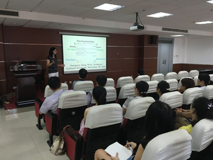 本次 “离子液体电化学行为及传感器的生物界面构建”讲座成功举办,不仅有助于提高我院广大研究生同学对科研的热情,养成良好的科研态度,塑造科研品质,启发同学们深度思考的能力,同时也精进了我院“耳濡目染,自然天成”的育人环境,为我院研究生同学们的学术科研奠定了良好的基础。