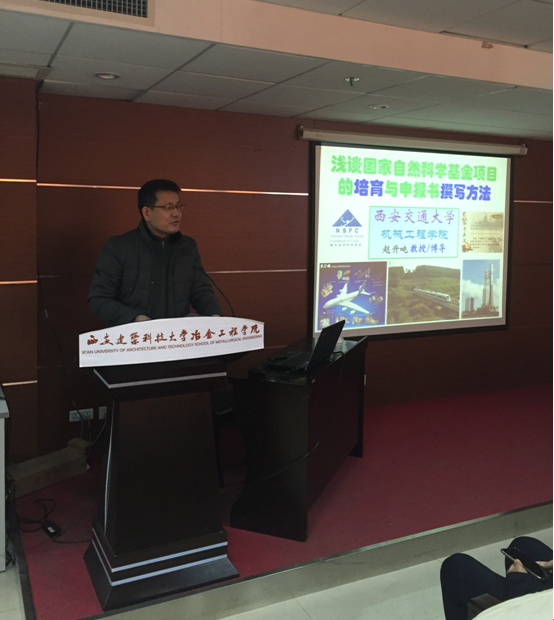 2017年1月11日下午3点整在工科楼1111,赵升吨教授来我院作了一场题目为“国家自然科学基金项目的撰写与培育”学术讲座。冶金学院,材料学院和机电学院的部分老师和博士研究生80余人参加。
