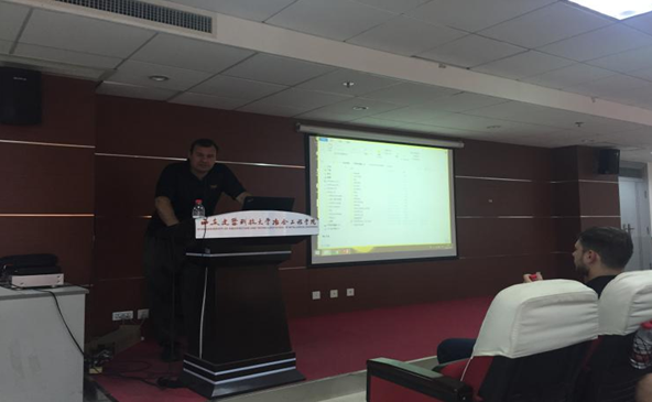 讲座开始,Viadisav Paley和Viadislav Yakubov两位老师分别讲解了英语学术论文的写作以及中文与英语的差异及不同用法,并详细的讲解了一些英文论文写作和中文论文的写作中一些典型词汇的用法、语法以及语言环境,这些对于同学们在之后的英文论文写作中都大有裨益。接着,Alex A. Volinsky教授就自己多年的科研经历和我院的研究生同学们做了一些交流。Alex A. Volinsky教授讲解了薄膜加工及其机械性能和特性,薄膜材料的粘附性和薄膜的断裂,纳米压痕,力学性能与表征,辐射材料的性能和XRD分析,医用Co-Cr-Mo合金制备及研究分析及材料的环境退化等领域的研究。