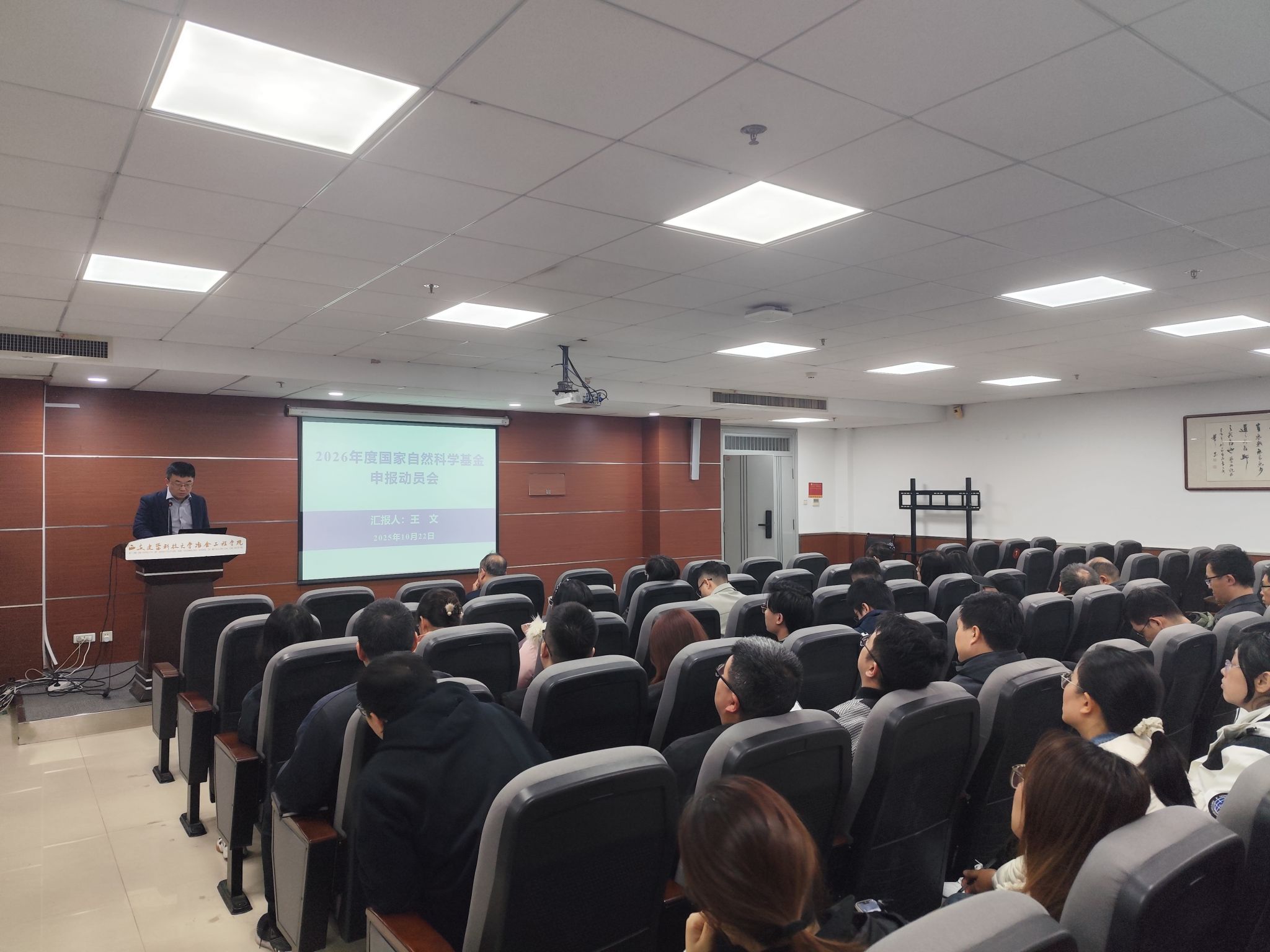 王文副院长总结了2025年国基金的申报和获准情况、分析了学院基金申报中存在的问题,并针对性提出了建议和申报要求。