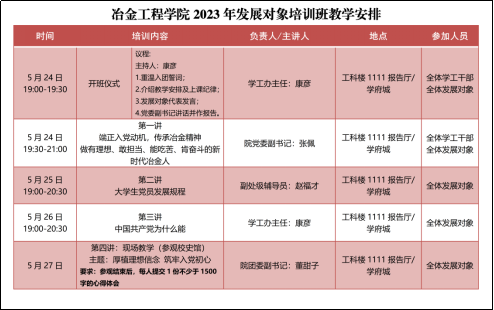 本次发展对象培训班共为期12天,将采用集中培训、现场教学、视频教学、分组讨论等多种学习形式,引导党员发展对象深入学习党的理论知识,筑牢听党话、跟党走的思想根基,为实现中华民族伟大复兴的中国梦培育青春力量。