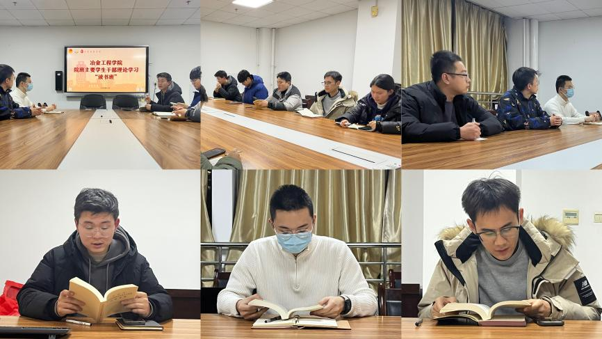 研究生会积极响应校团委和上级学生组织的工作要求,结合学院自身的发展情况,在学院团委的指导下,于2024年1月4日19:00在雁塔校区工科楼1102会议室召开冶金学院研究生会-班级主要学生干部理论学习读书班。冶金学院研究生会主要学生干部、2022级和2023级研究生各班班长参与会议。会议由研究生会执行主席郭楠主持。