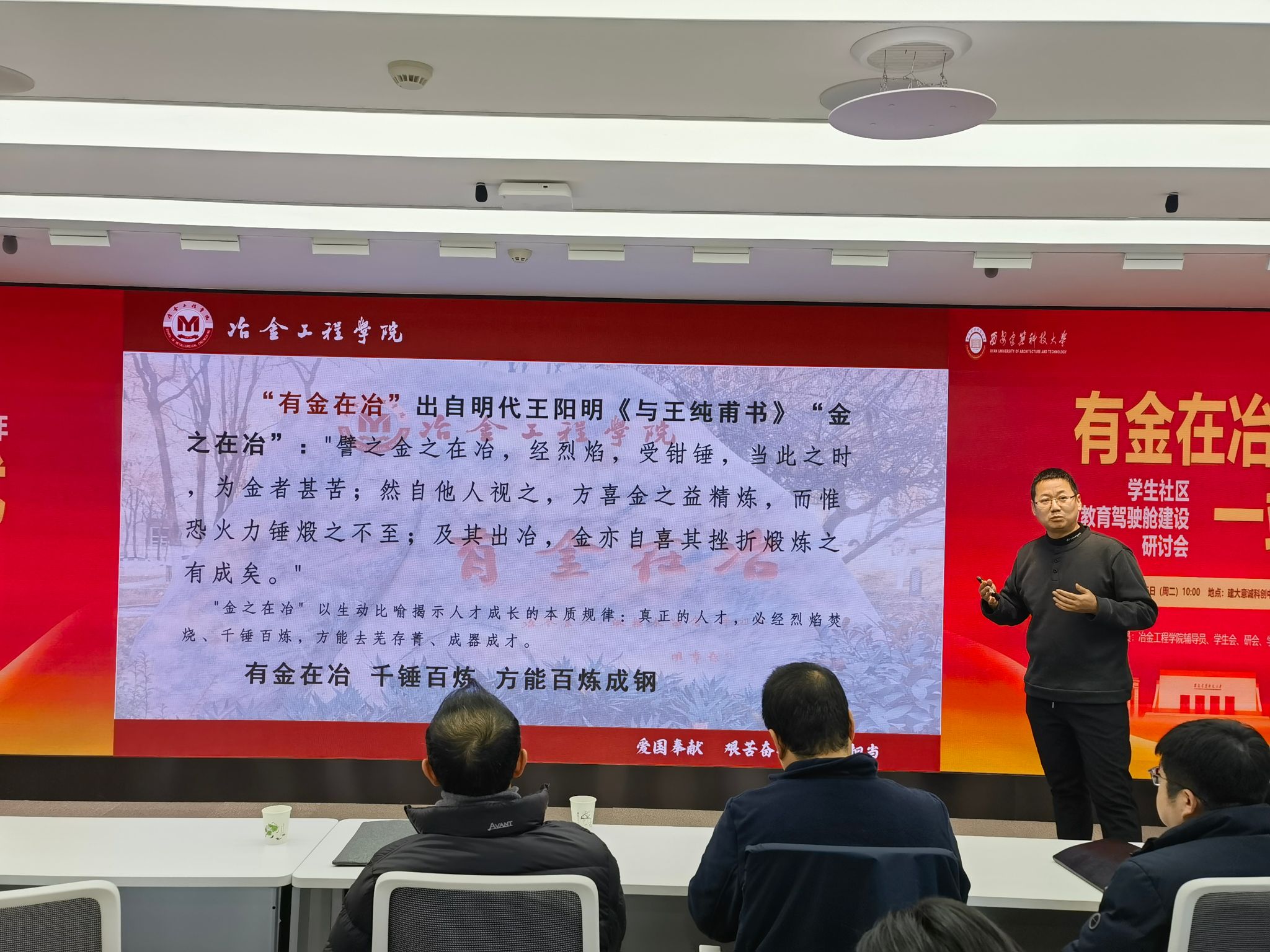 、网络与信息化管理处在建大意诚科创中心六楼智慧运营中心召开“有金在冶”“一站式”学生社区思政教育四个系统上线研讨会。网络与信息化管理处处长张龙,学生处学生综合事务管理科科长罗帅、冶金学院全体辅导员、学生党支部书记、研会、学生会主要干部40余人参加了研讨会。会议由学院党委副书记、副院长赵福才主持。