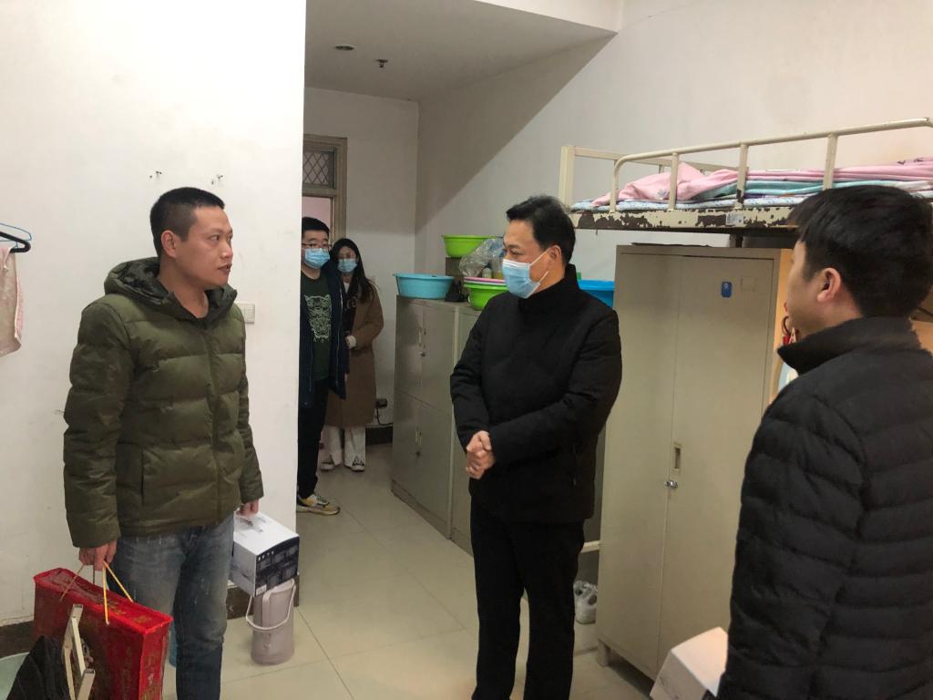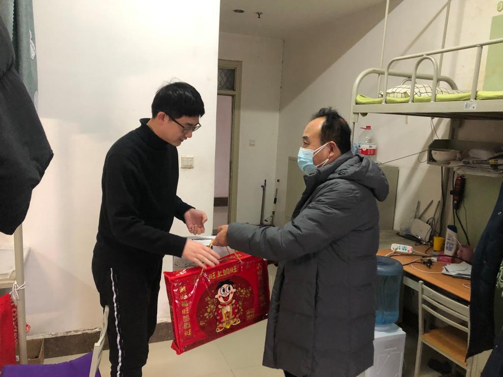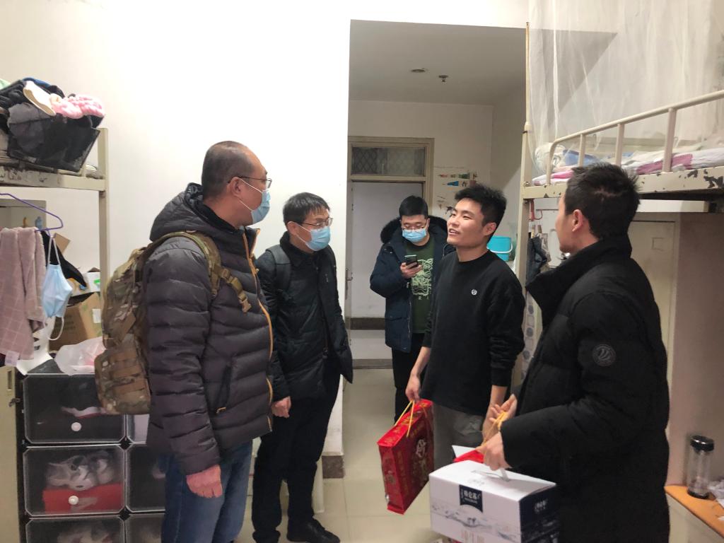 1月30日上午,学院党委书记马立建、院长李林波、党委副书记、副院长张佩、副院长杨西荣、党政办公室主任姚红红和各年级辅导员来到学生宿舍,看望慰问春节留校的11名研究生和13名本科生,并发放慰问品。