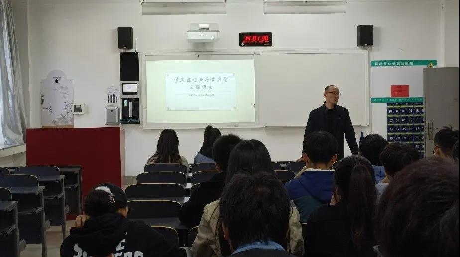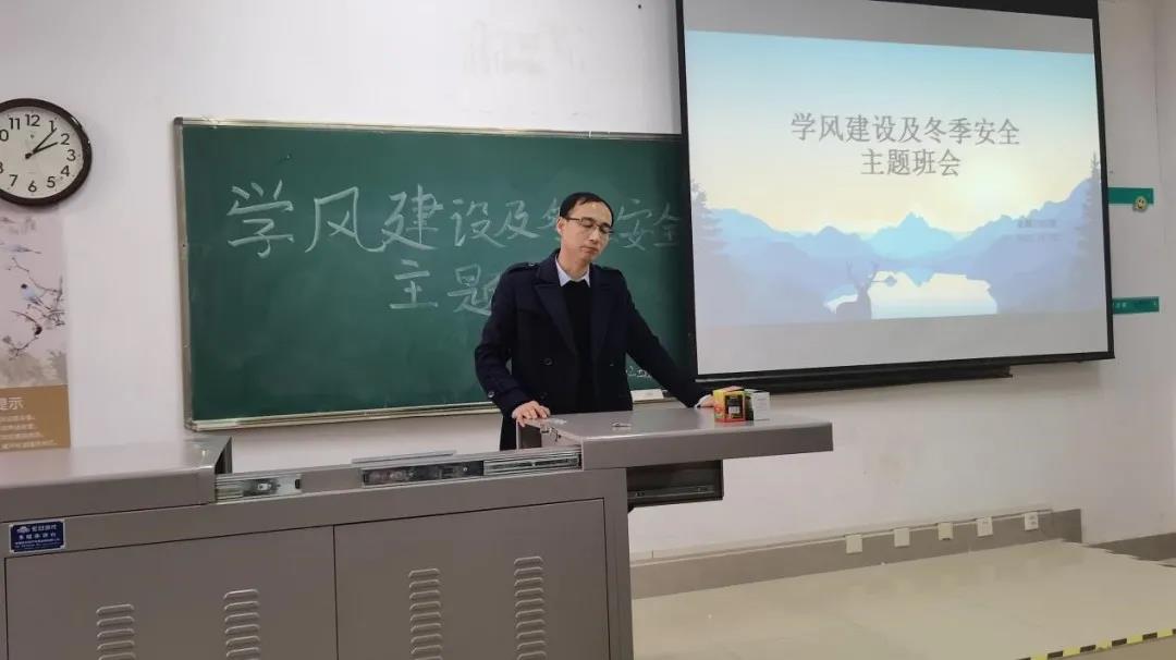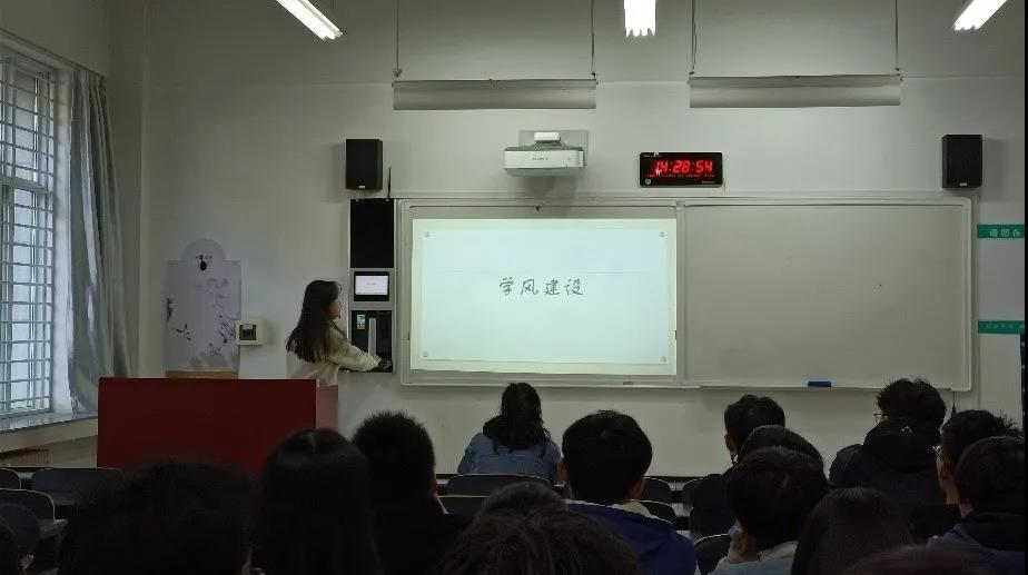 金属2102班班会上,班主任罗雷老师首先向大家阐释了学风的概念,学风是学生、班级乃至一所学校的综合素质的体现之一。然后,罗老师又谈到不久后的分批次期末考试,向同学们提出了诚信考试,绝不作弊的要求。最后,他讲到了冬季安全,告诉同学们在运动的时候应当注意安全,在假期出门时应当注意交通安全,并强调了在宿舍中不能使用大功率电器等。