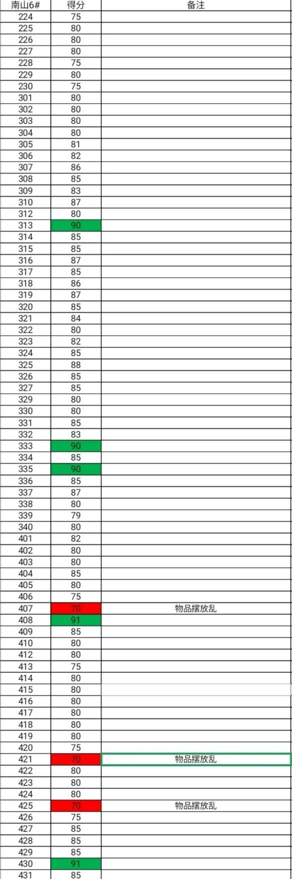 冶闻在线 | 91成人 第十三周宿舍卫生检查结果公示
