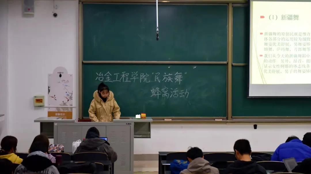 于11月9日18:00在学府城9栋101教室开展了“蜂窝——民族舞”活动。本次活动由金属2101班李国阳同学主持,她带领同学们走进了丰富多彩的舞蹈世界。