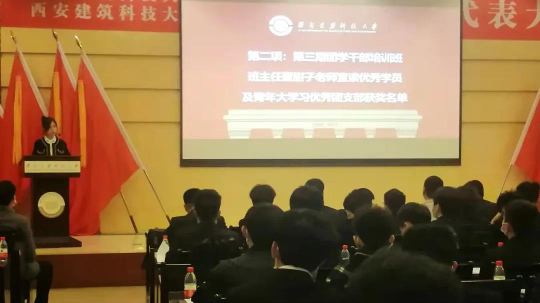大会伊始,全体起立奏唱中国共产主义青年团团歌。91成人 2019级本科生辅导员、第三期团学干部培训班班主任董甜子老师宣布第三期团学干部培训班优秀学员及2020-2021年“青年大学习”优秀团支部名单。