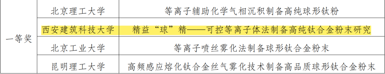 为推动青年学子的科技创新成果向现实生产力转化,参与解决“卡脖子”问题,近日,“挑战杯”竞赛组委会首次举办“揭榜挂帅”专项赛。在此次“挑战杯”竞赛“揭榜挂帅”专项赛“高效率球形钛合金粉末制备新原理新工艺研究”竞赛上,我院学子提交的作品“精益‘球’精——可控等离子体法制备高纯钛合金粉末研究”荣获全国一等奖,“超高转速——高进给速率等离子旋转电极雾化制备TC4超细粉末技术开发”荣获全国二等奖。