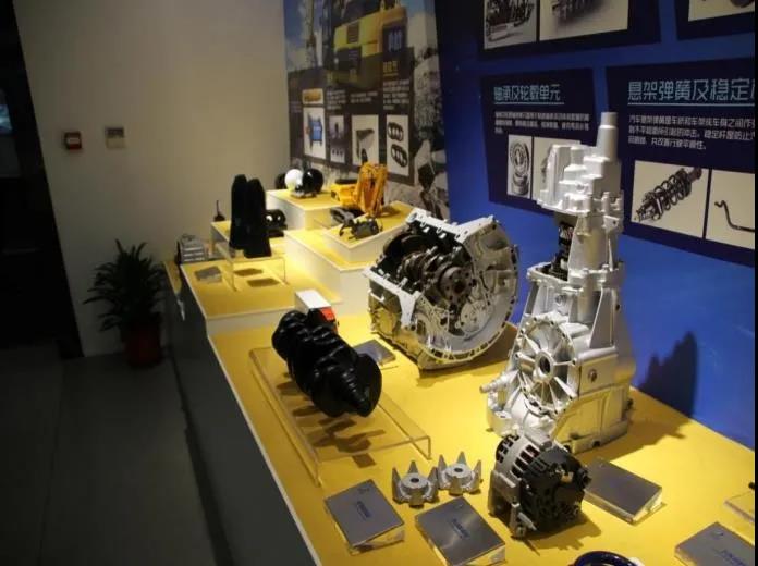 第三展厅中陈列着中天钢铁集团出品的各种特色钢材,既有螺纹钢、弹簧钢、导轨等基本类型钢材,又有轴承及轮毂单元等复合组装的钢材,与这些钢材共同展列的是中天钢铁集团的众多知名合作企业,不可胜数的专利项目和荣誉证书。