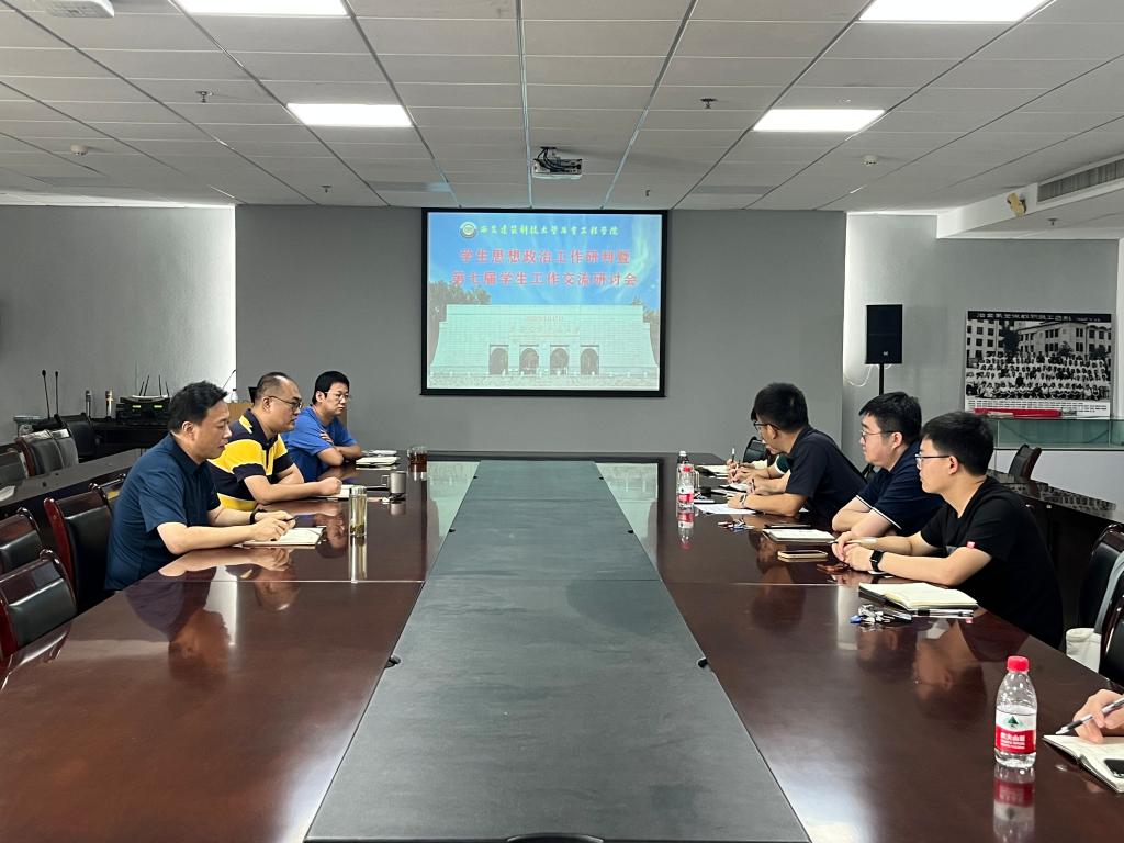 在工科大楼1106会议室召开学生思想政治工作研判暨第七届学生工作交流研讨会,学院党委书记马立建、院长李林波出席会议,全体学生工作干部参加会议,党委副书记、副院长张佩主持会议。