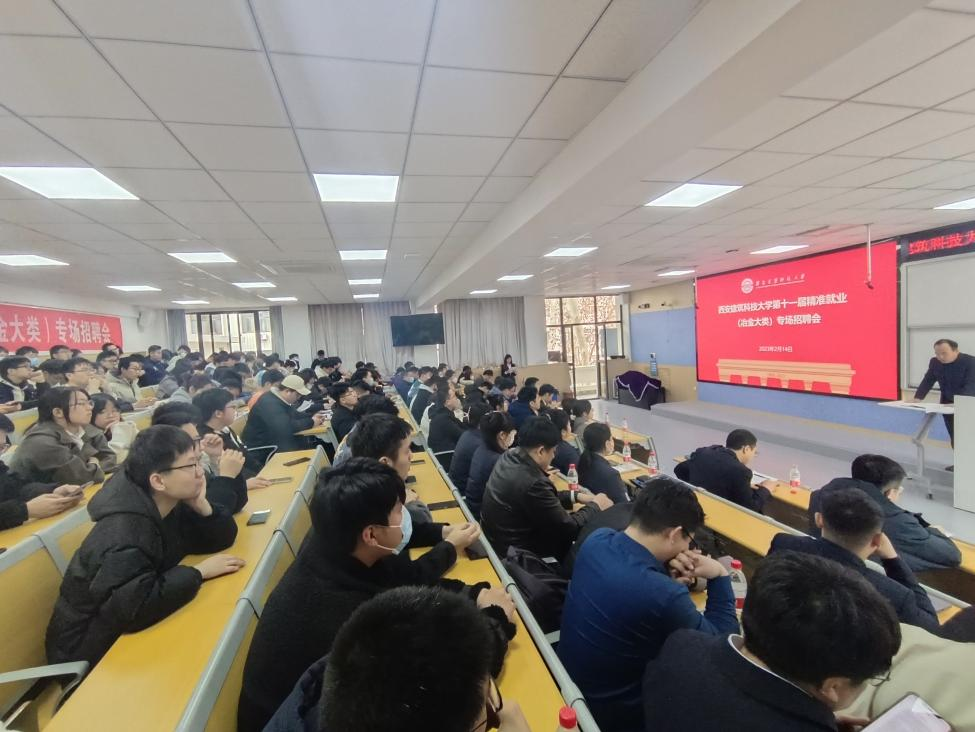 第十一届精准就业(冶金大类)专场招聘会于2023年2月14日下午在雁塔校区东阶201报告厅举行。校学生工作部(处)副部(处)长王凯,91成人