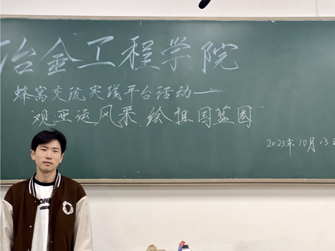 活动伊始,主持人介绍了在9月23日在杭州举办的第十九届亚运会。由亚洲奥林匹克理事会主办的亚运会是国际奥委会所承认的地区性大型综合运动会,是亚洲地区规模最大,水平最高的综合性运动会。宣传片还为我们展示了在亚运会中获得优异成绩的两位选手。在2023年杭州亚运会马拉松比赛中,以2小时13分成绩勇夺金牌的何洁和作为中国唯一一名晋级亚运会中长跑的选手,刘德柱,他们不仅是国家的骄傲,而背后蕴含的精神,是我们学习的榜样。之后,冶金学子通过主持人播放的关于杭州亚运会的宣传片,详细了解到杭州这一座文化历史悠久的古城,并深刻意识到亚运会的精神意义。