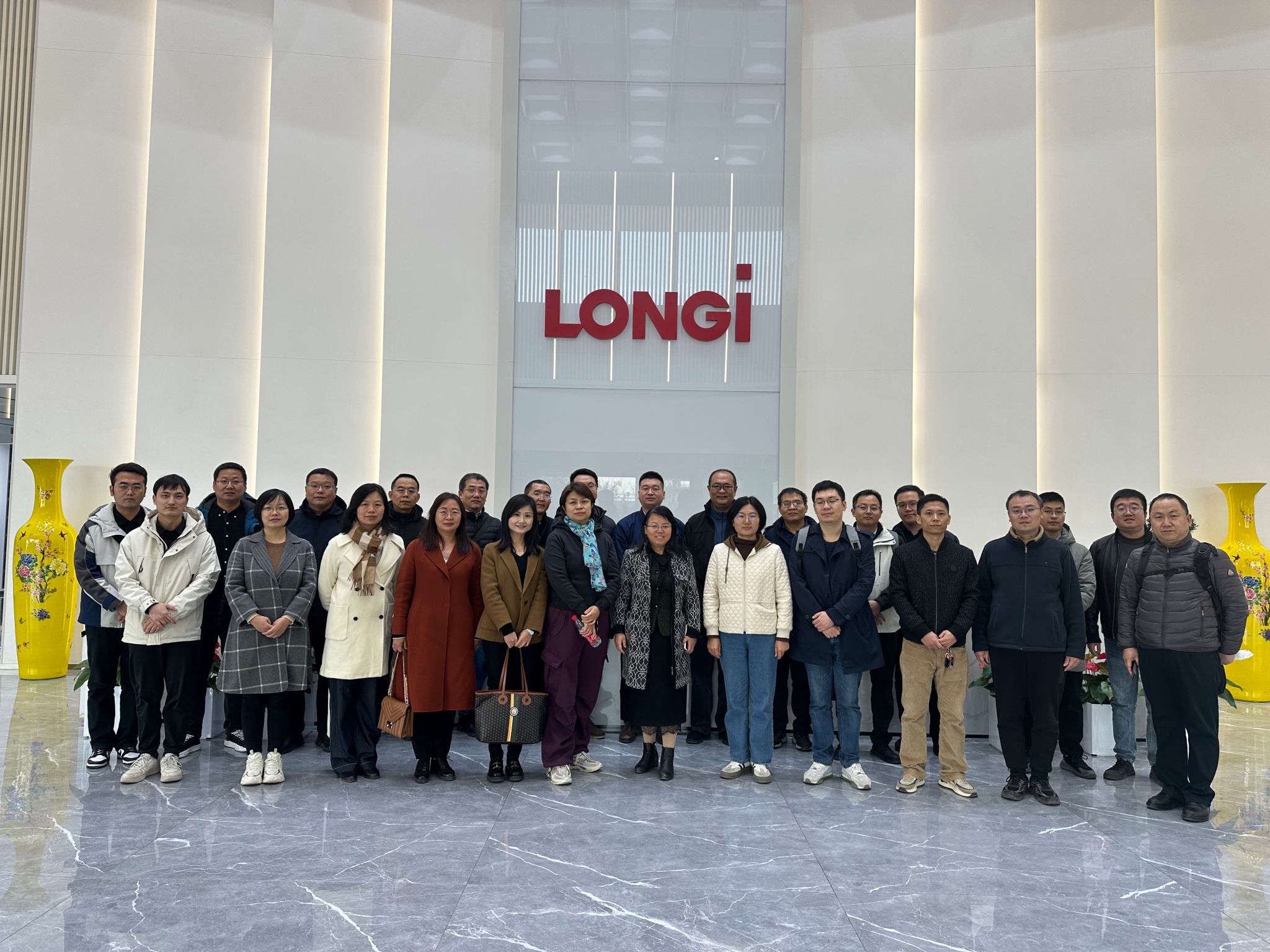 会前,学院一行参观了隆基乐叶光伏科技(西咸新区)有限公司企业展厅和太阳能光伏电池生产线,深入了解了企业发展历程、生产经营、业务范围等情况。