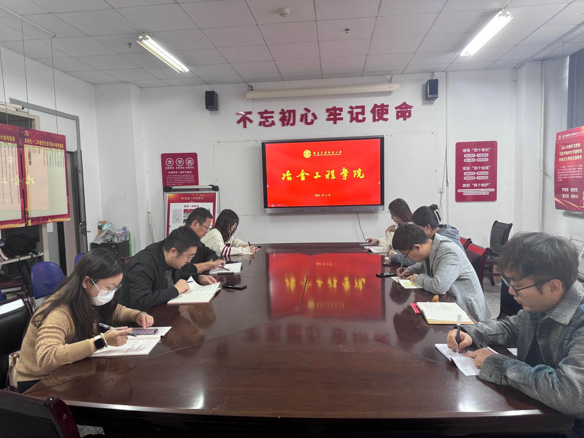 在“有金在冶”党员活动室(工科楼103)召开本学期第二次学生党支部书记工作例会,学院党委副书记、副院长赵福才,全体学生党支部书记参加会议。会议由学生工作办公室主任康彦主持。