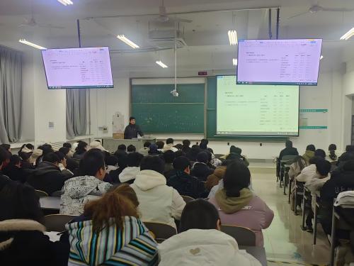 本科2024级于2025年3月4日19:00在学府城9-311教室,召开2024-2025学年第二学期年级大会,全体学生参会。会议由辅导员陈子秋、高雅琪主持,围绕学业分析、学风建设、政策解读与就业指导三大主题展开,旨在引导学生明确目标、夯实基础、激发成长动力。