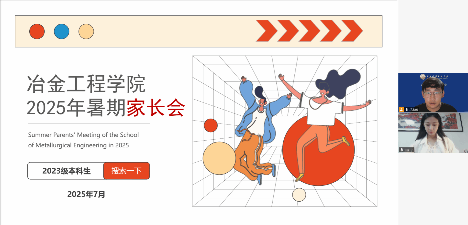 2023级本科生2025年学情分析暨暑期安全教育家长会在线上召开。学院团委副书记、2023级辅导员董甜子,2023级辅导员岳家新出席会议,全体2023级本科生家长参会。