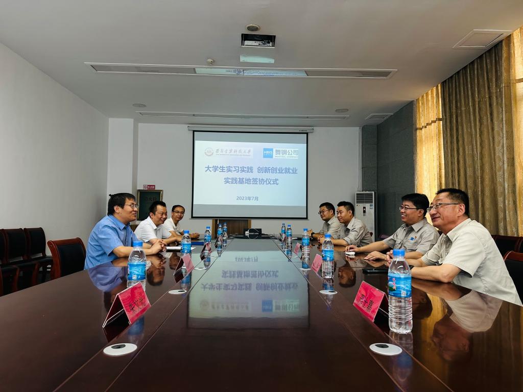 与舞钢公司举行了学生实习、实践基地协议签约仪式和共建大学生实习实践、创新创业、就业实践基地授牌仪式。